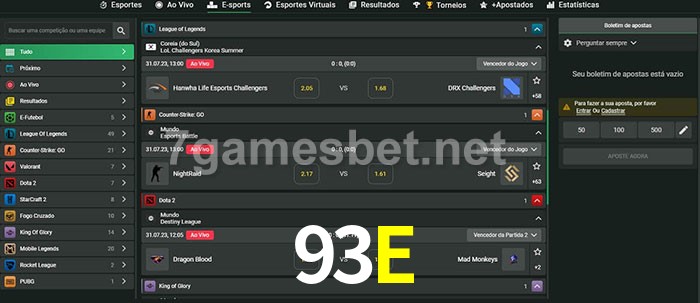 O 93E oferece uma grande seleção de opções de apostas em e-sports com probabilidades competitivas